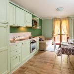 - Kuchnia: aneks kuchenny w każdym apartamencie