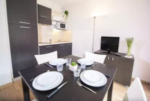 - Kuchnia: aneks kuchenny dostępny w każdym apartamencie