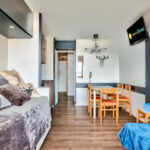 Rezydencja L’Ours Blanc położona jest w samym sercu kurortu Alpe d’Huez, zaledwie 300 metrów od wyciągów narciarskich. Z obiektu roztacza się wyjątkowy widok na dolinę lub masyw Oisans, co czyni go idealnym miejscem dla miłośników sportów zimowych i górskich wędrówek.Na terenie rezydencji znajduje się przechowalnia sprzętu narciarskiego. W bezpośrednim sąsiedztwie (ok. 10 m) działa wypożyczalnia nart, a zaledwie kilka kroków dzieli obiekt od pasażu z restauracjami i barami (Adres: Pierre & Vacances L’Ours Blanc, 65 Av. des Jeux, 38750 Huez, Francja).